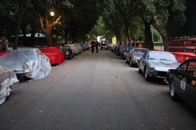 We spend the afternoon walking the gardens of Villa Borghese taking in the statues, fountains and ponds before stumbling upon Ferrari heaven. Their is a yearly cavalcade for historic Ferrari collectors and it happens to be in Rome this year. The cars, while having suffered the afternoons storm, are simply stunning. The range is vast and, while I didn’t count them, I would think there were about eighty of them in total.