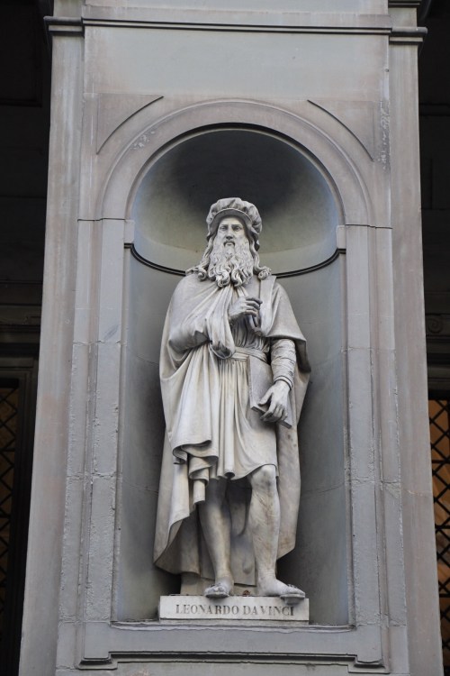 We walk through the various streets and piazzas while heading towards the river Arno. Every major building or open area seems to be accompanied by an array of statues ranging from mythical Perseus, who slayed Medusa, to scientists and philosophers such as Leonardo and Galileo. Its impressive to see the names and read about their lives, discoveries and theories.