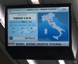 We head to the train station and hop on the high speed train to Florence. The Frecciarossa starts off slow but accelerates to nearly 250Kmph during the trip. That fact can be verified via the overhead displays that proudly tell you that you are approaching breakneck speed!