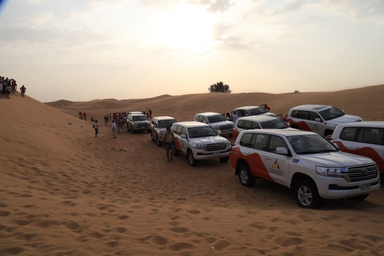 We have booked a desert diner tour which sees us picked up from the hotel early afternoon by a budding Paris to Dubai Rally driver in a Toyota Land Cruiser. He is happy, chatty and a lead foot when it comes to sand dunes. Racing up the slopes, cresting carefully then careening down the other side is great fun for all of us.