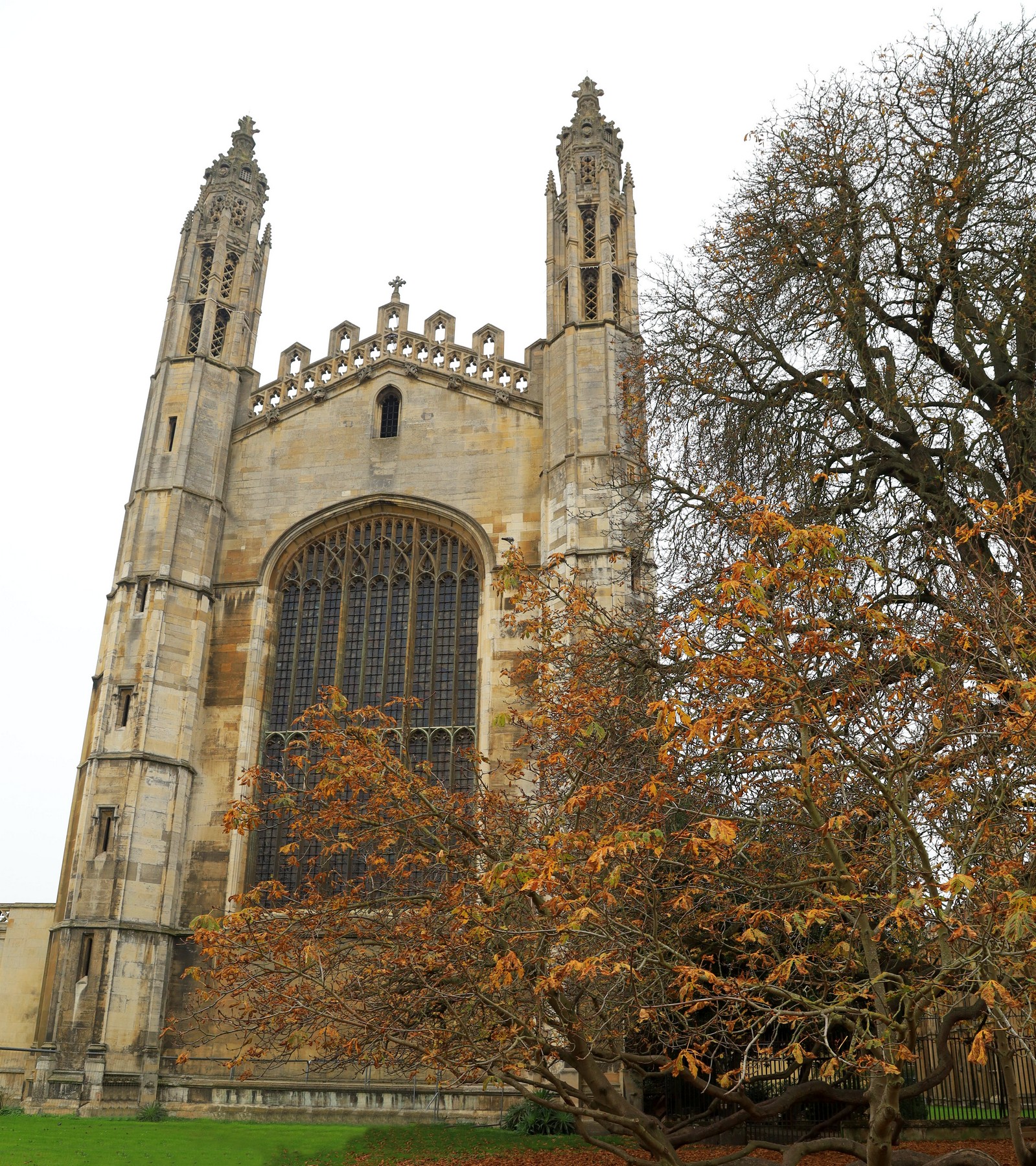 We head for Cambridge on a cool Autumn day under overcast skies. Ninety minutes by train and we are there walking through a small city that is steeped in history. This is the home of the University of Cambridge founded in 1209 and rated among the best universities in the world. It’s also a city where architecture, arts, streetscapes and open fields seamlessly meld into one another. The architecture is a blend as well and includes Perpendicular Gothic examples such as Great St. Mary’s church, the King’s College Chapel in its English Gothic style, and neo-classical design style of the Fitzwilliam Museum. To that you can the round church and you have a full bag of classical buildings.