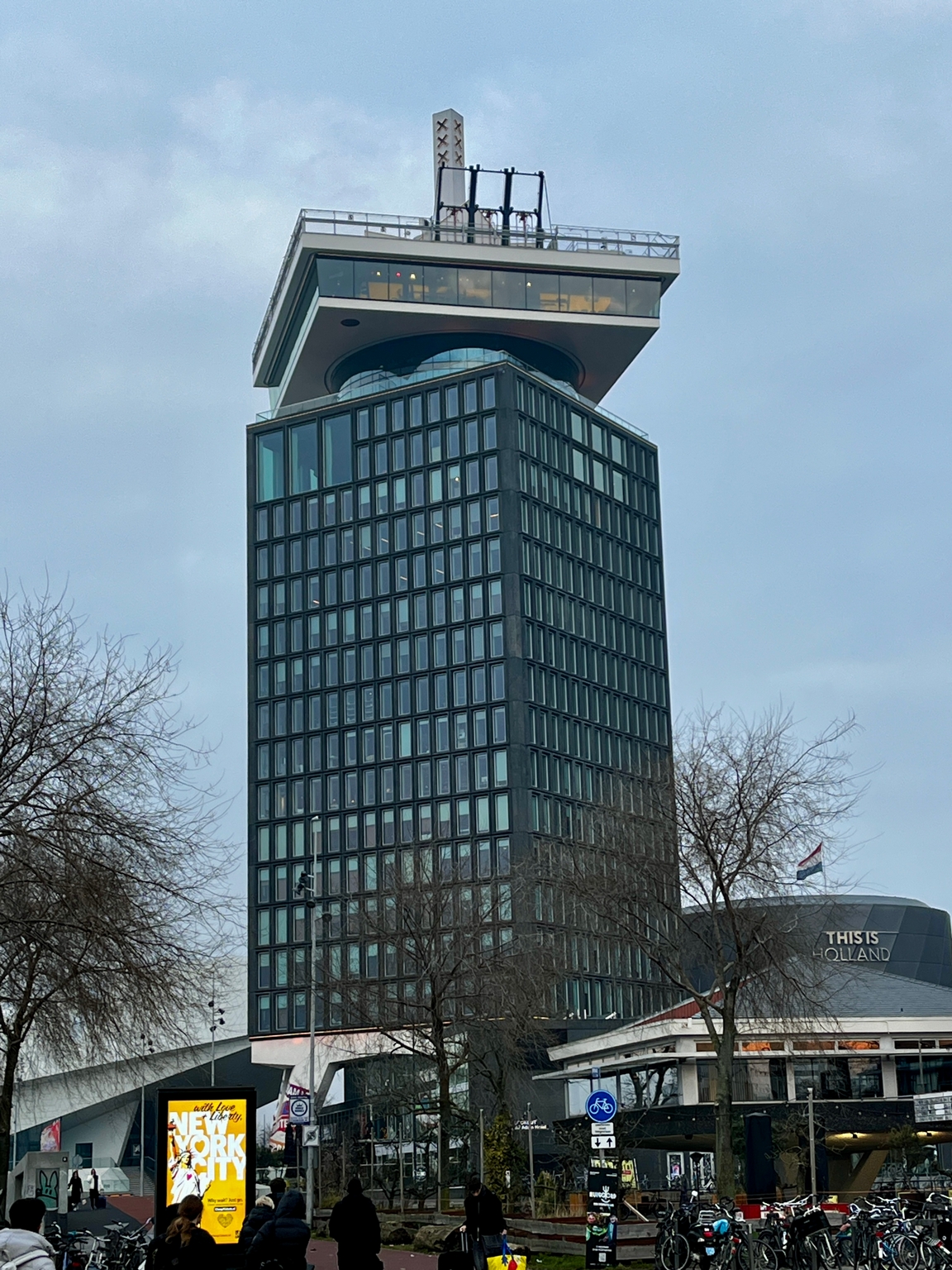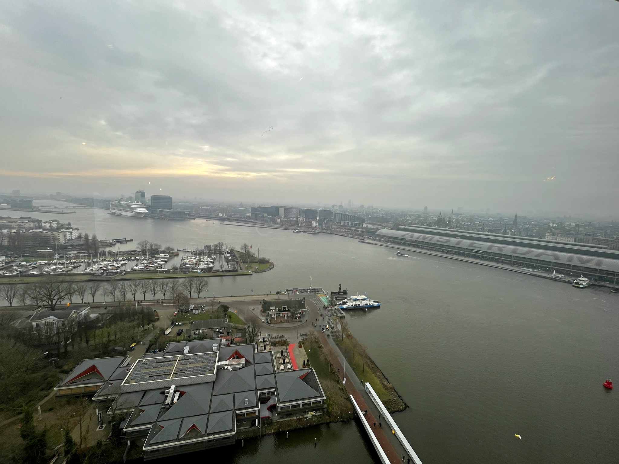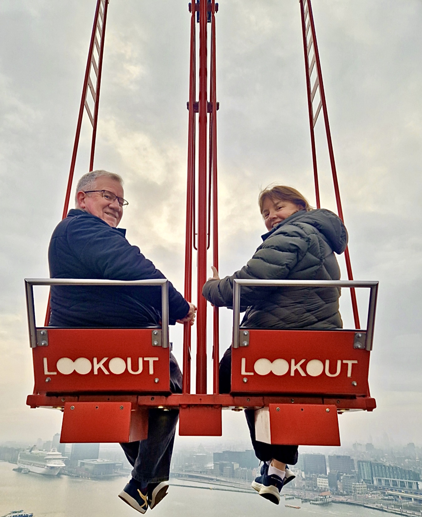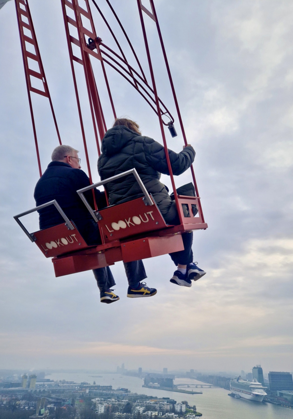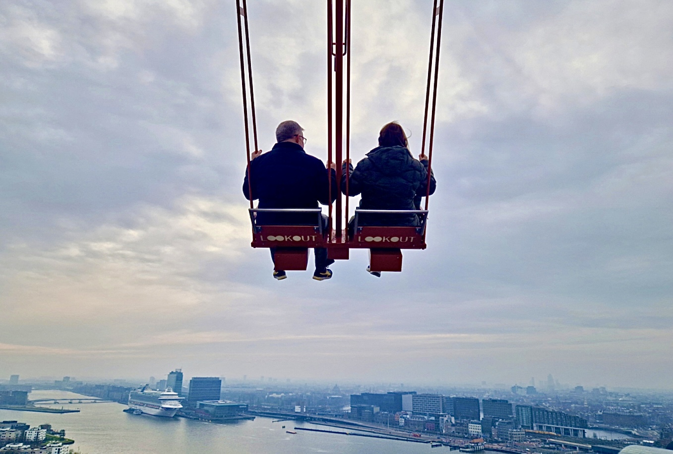 We are not daredevils at heart but the opportunity to ride a swing while hanging over the side of a building was too tempting for us to miss. So Sunday morning we headed to Amsterdam Centraal Station where we caught the free ferry across to the other side of the main canal. From there its a short walk to the A’Dam building where the action starts.