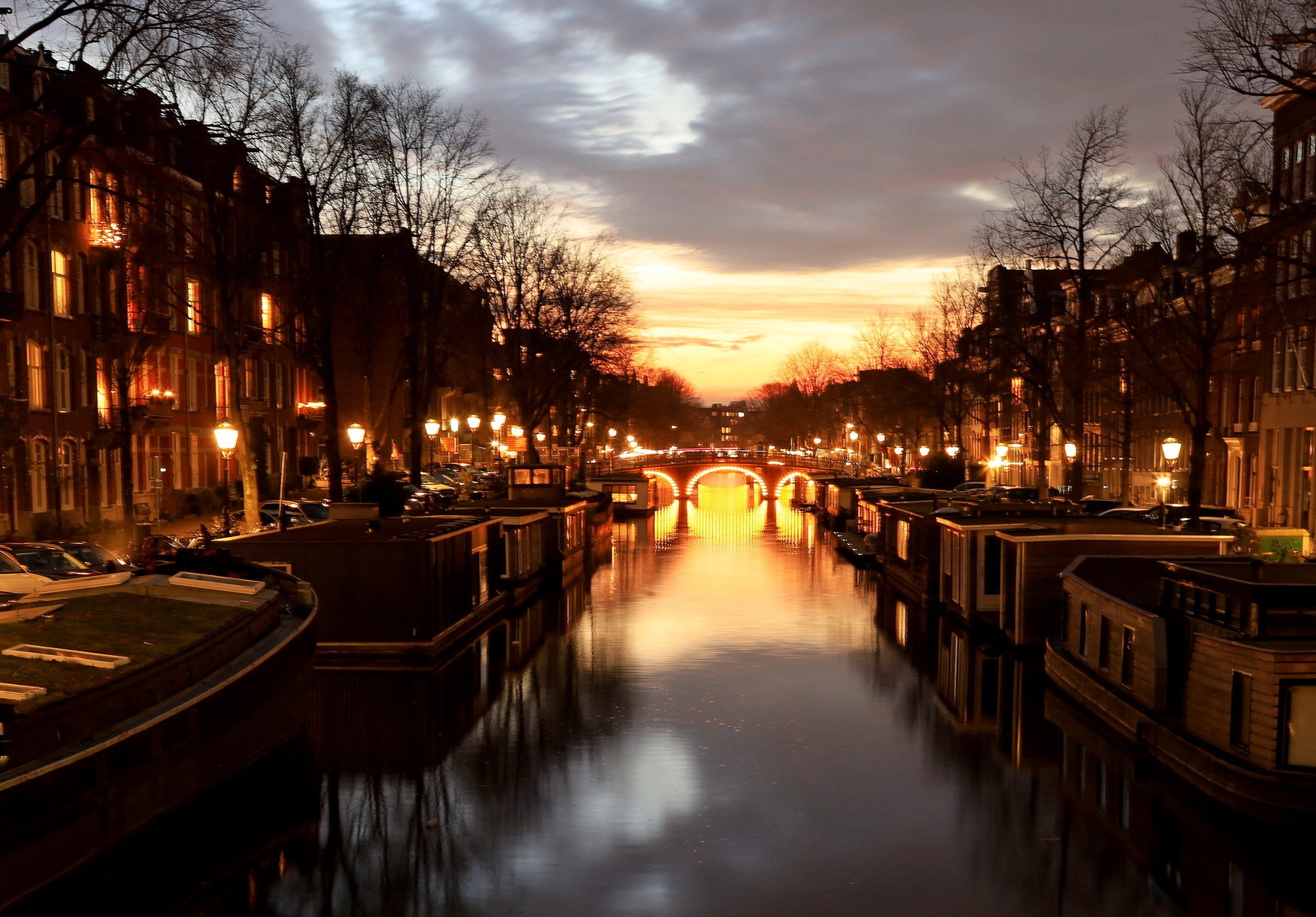 Saturday afternoon sees the sun come out giving us the chance to see another aspect to the city. The grey skies so far have made is feel a little colourless but the golden hues make a statement on the canals. Sunset over the canals with the street lights ablaze is certainly worth the wait.