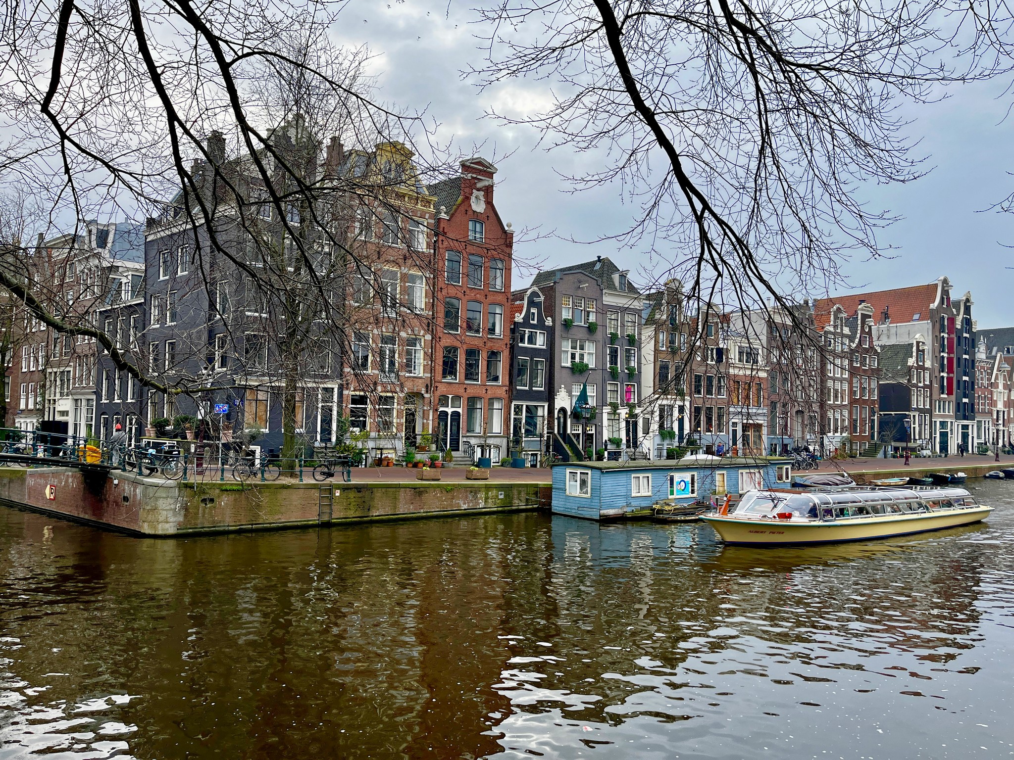 Other than the cool and overcast conditions, Amsterdam is an interesting place to visit, with a broad range of things to see and do, from museums and art galleries to cafes, boat rides and swings that overhang the edge of a tall building and some of the prettiest canals we have seen. We are sure that a late spring visit would have provided a much prettier set of photos but even with no leaves on the trees, the canals with their often crooked houses kept us amused while we wandered the city.