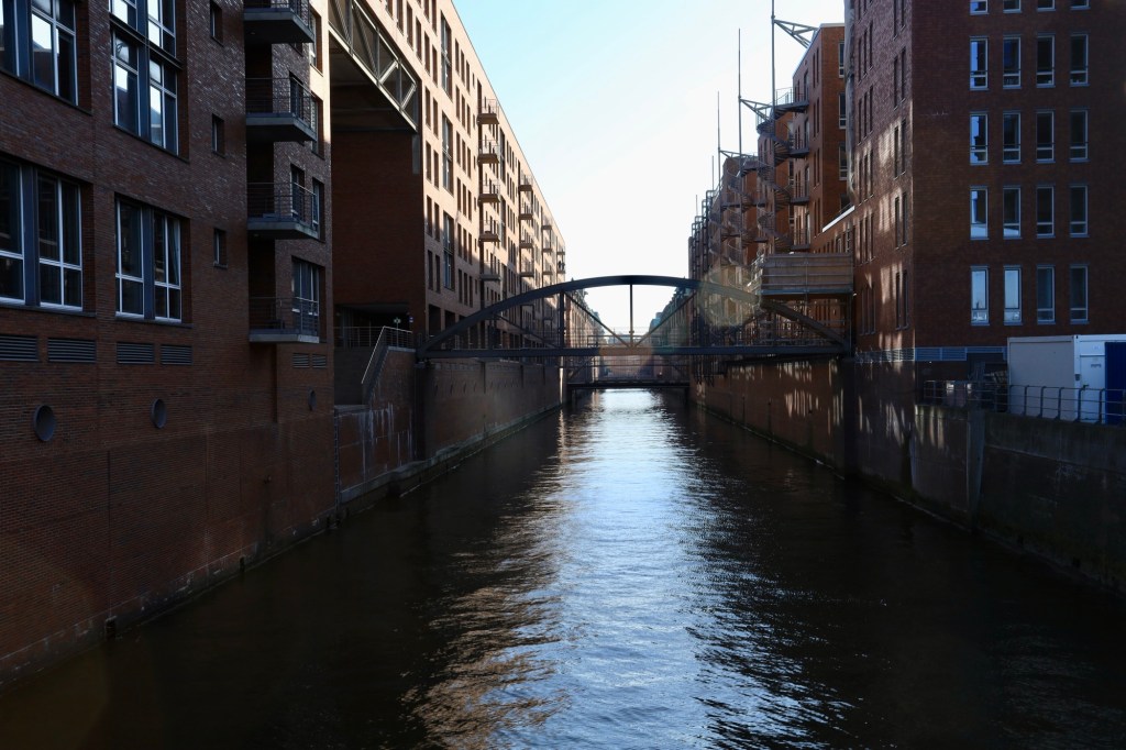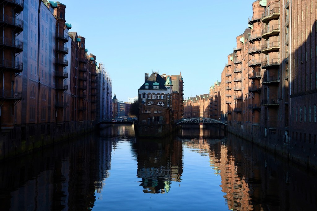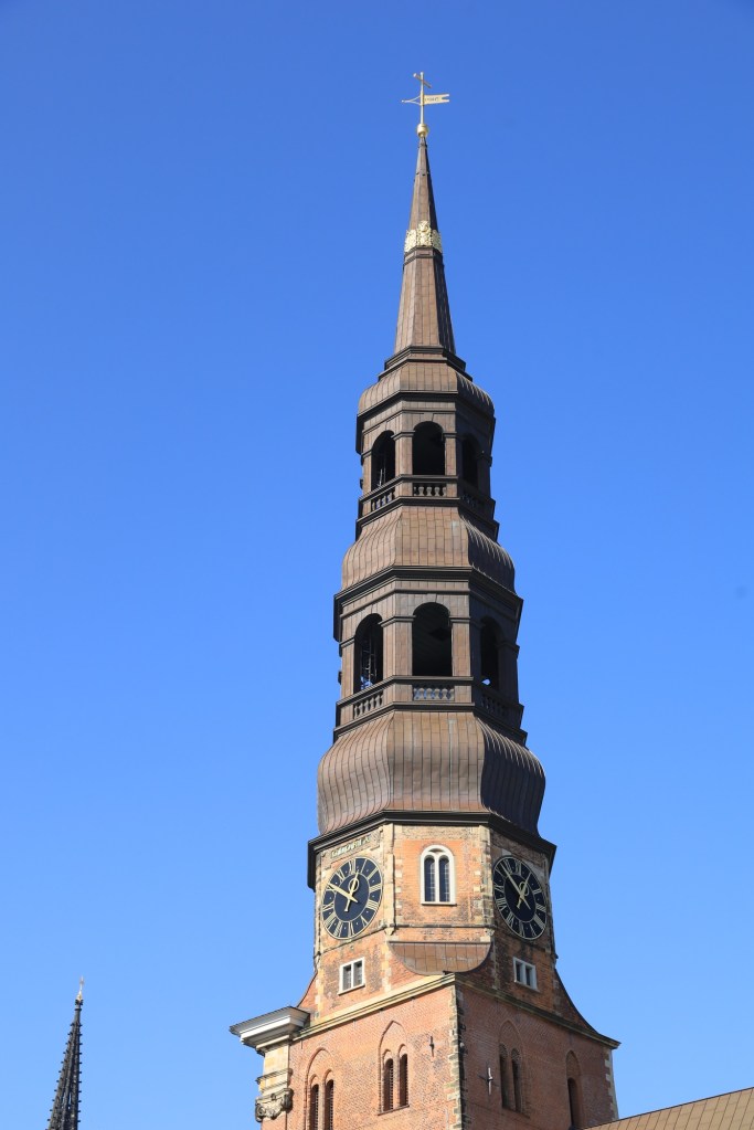 This is a port town with canals, bridges and plenty of characterful architecture. There are remnants from the wars such as the church of St. Nikolai where the main tower still stands and has been stabilised and updated to allow people to take an elevator ride to the top. The 360 degrees views are amazing and the stories told on the sign boards at the top are thought provoking as they tell the tail of a leader trying to take over the world.