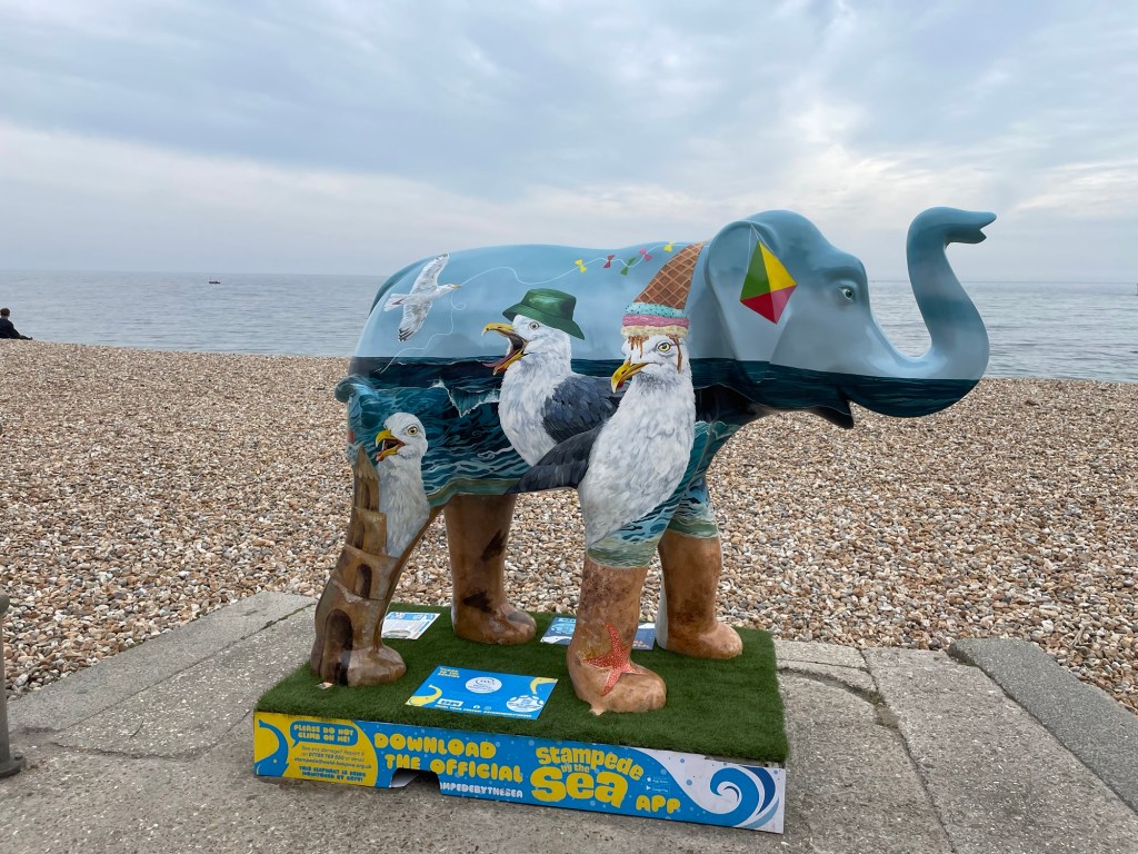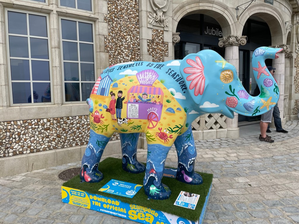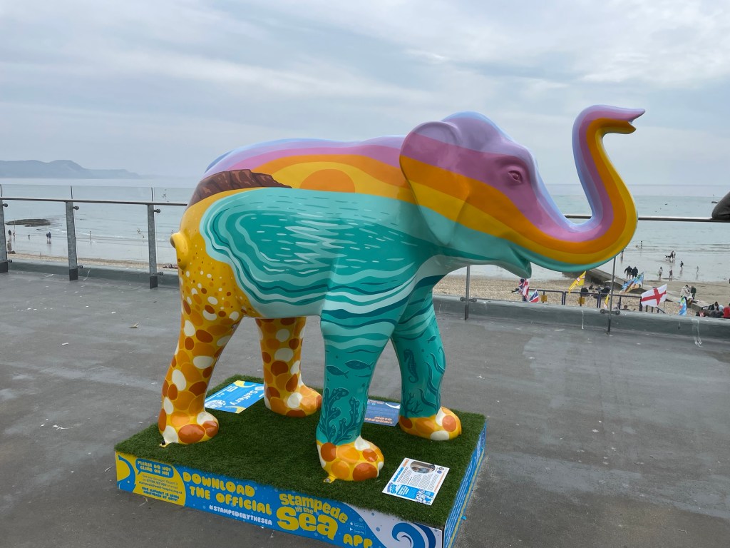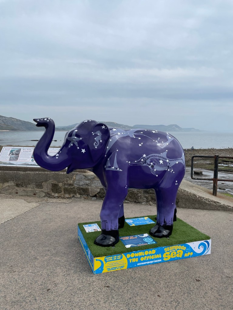 There is a local charitable event named Stampede by the Sea going on where statues of elephants have been scattered around the township, each painted by local artists and celebrities. The goal is to track down all of them, take photos as evidence and then enter the draw to win a prize. It’s fun and takes you to parts of the town which you may not have visited before. At the end of the event the elephants will be auctioned off to raise funds for a local hospice charity. We start strong and then find out that there are 59 of them scattered across three townships so opt to just focus on the Lyme Regis waterfront. The photos of the elephants are Stacey’s and show that she is becoming a very capable accomplice for these adventures.