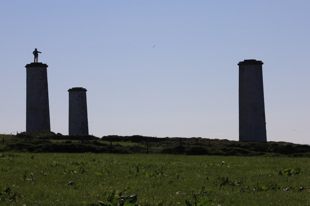 There are several Metal Man beacons positioned around Ireland with this one in Tramore placed there after the tragic drowning of 360 onboard the Seahorse in 1816. It serves as a navigational aid with the columns on each headland letting sailors know the bay mouth is between them.