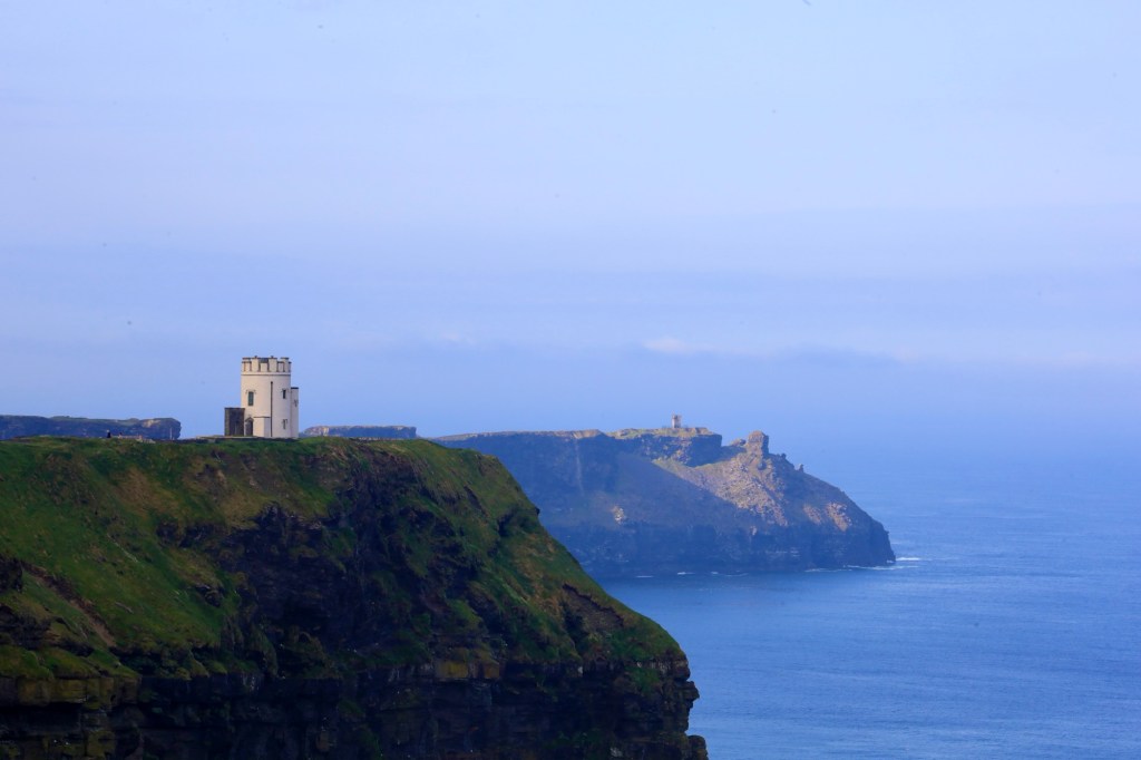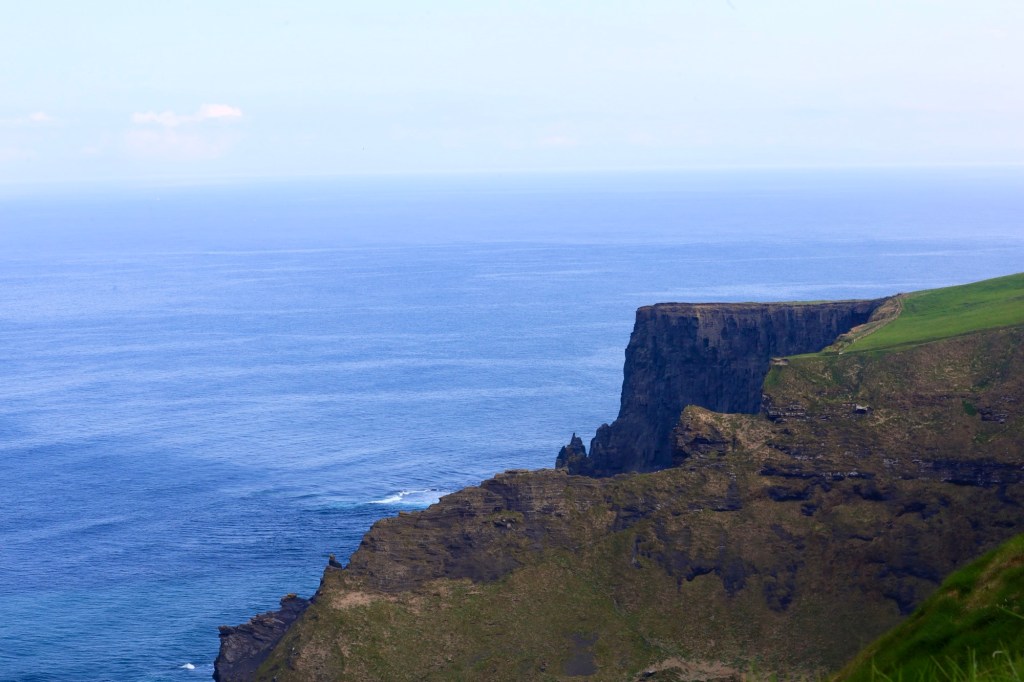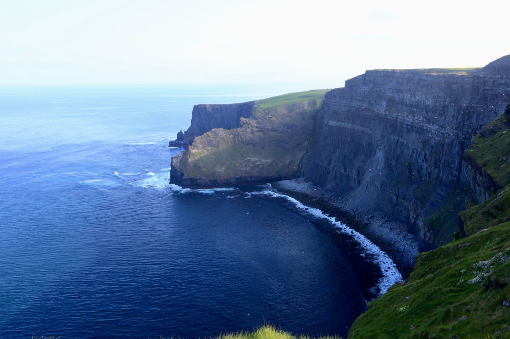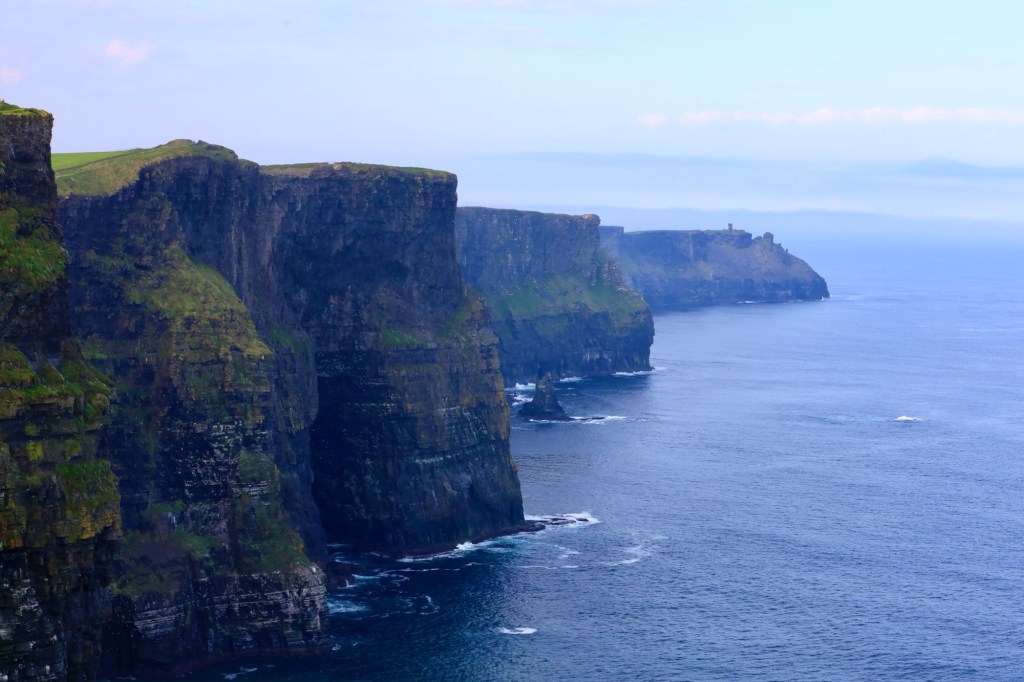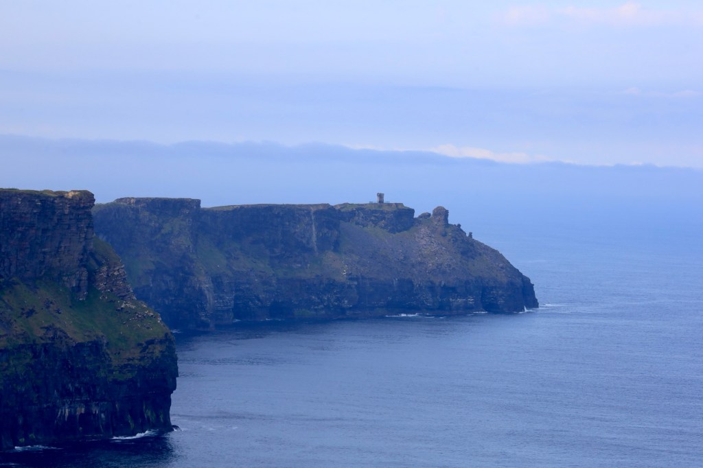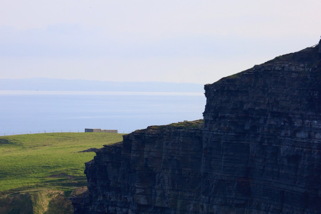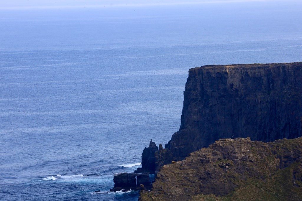 The next morning we are up early to head out to another of Mother Nature’s best efforts. The Cliffs of Moher are a short drive away and we are there as they open the gates to the parking lot. This area has a similar beauty to yesterday but is more refined with properly formed pathways, safety walls made from local slate sheets and a visitor centre that has interactive displays and a 4D cinema showing what it’s like to be a seagull living near the cliffs. It sounds a bit corny, but it works. I am taken by the views again but still love the rawness of Loop Head.