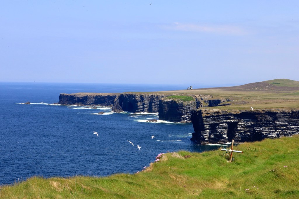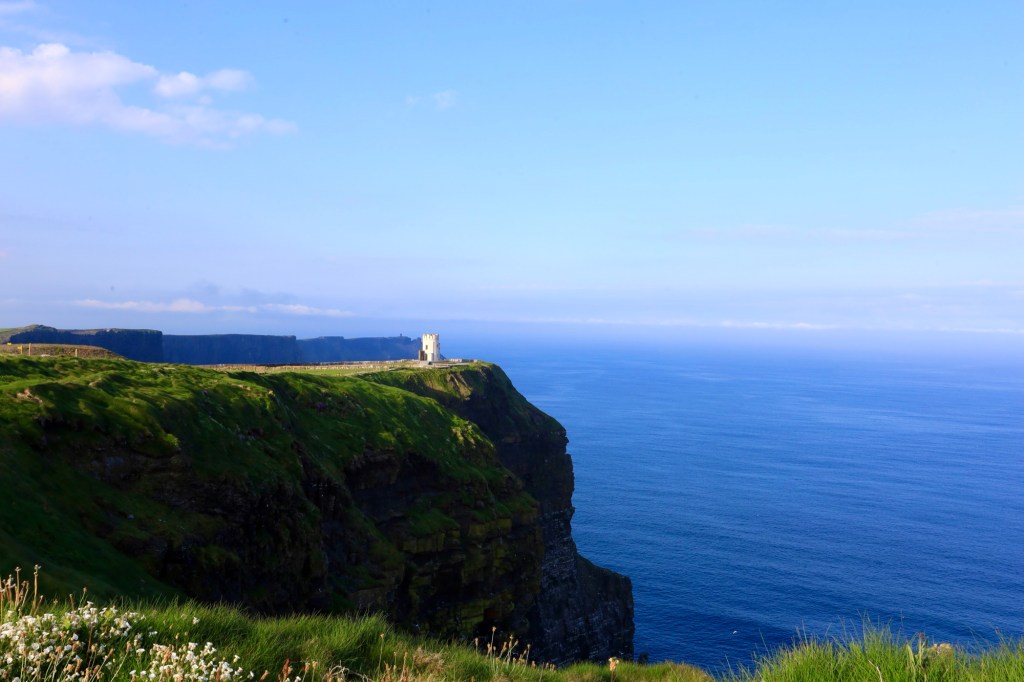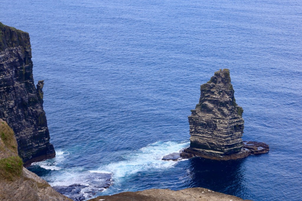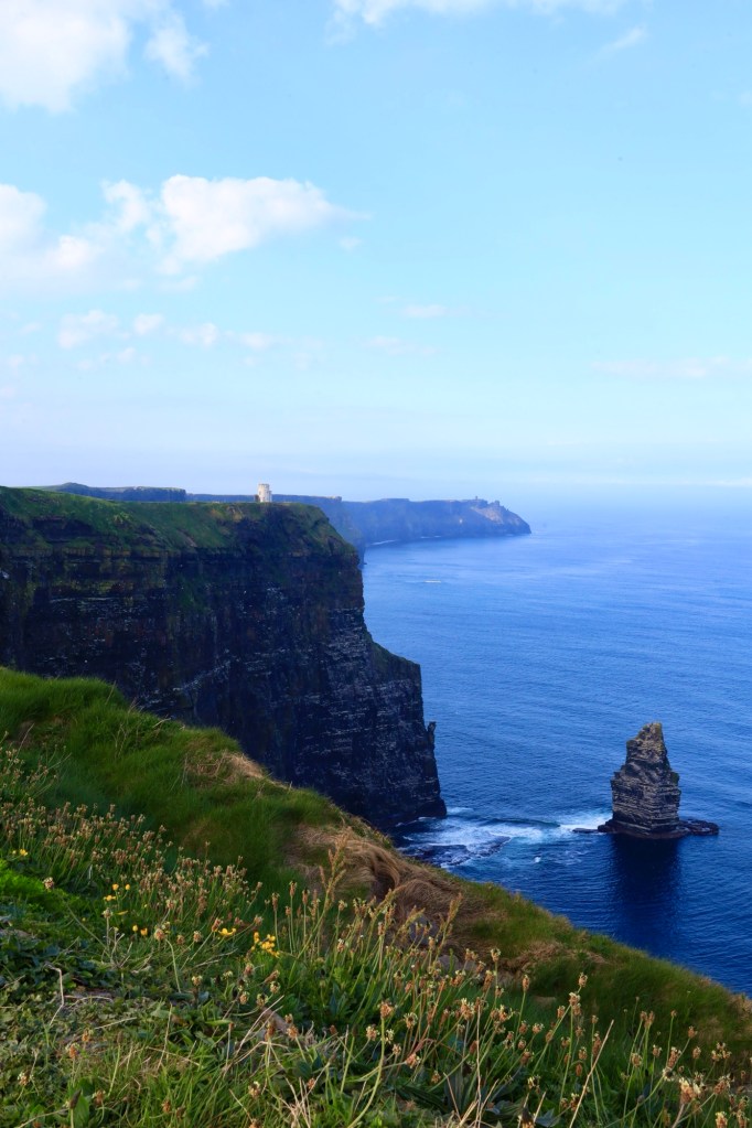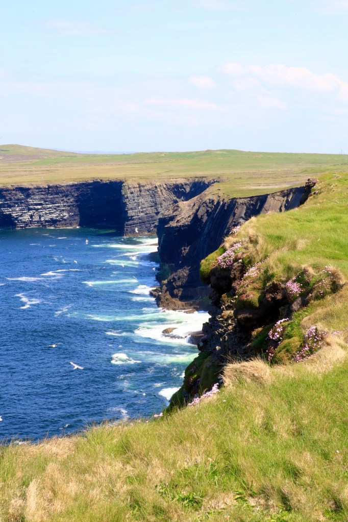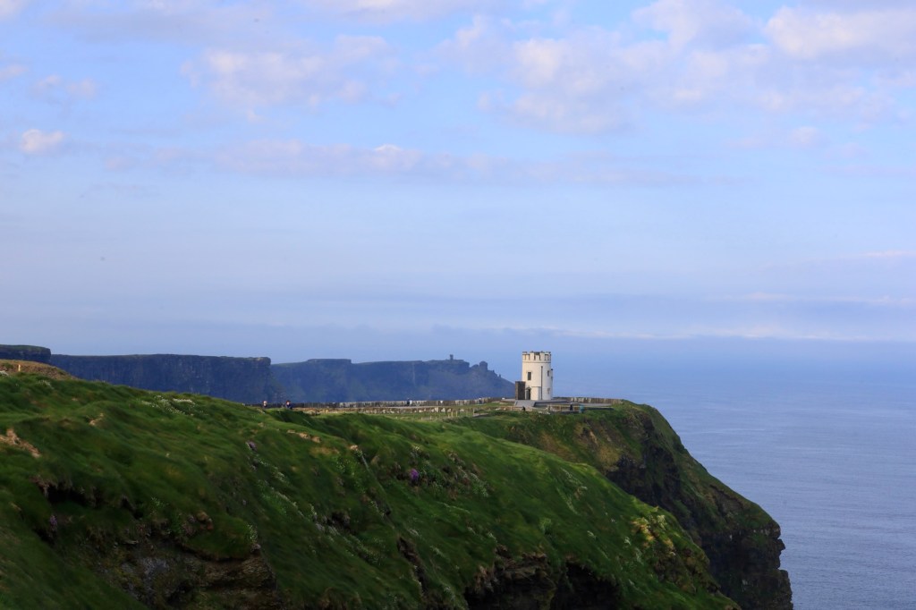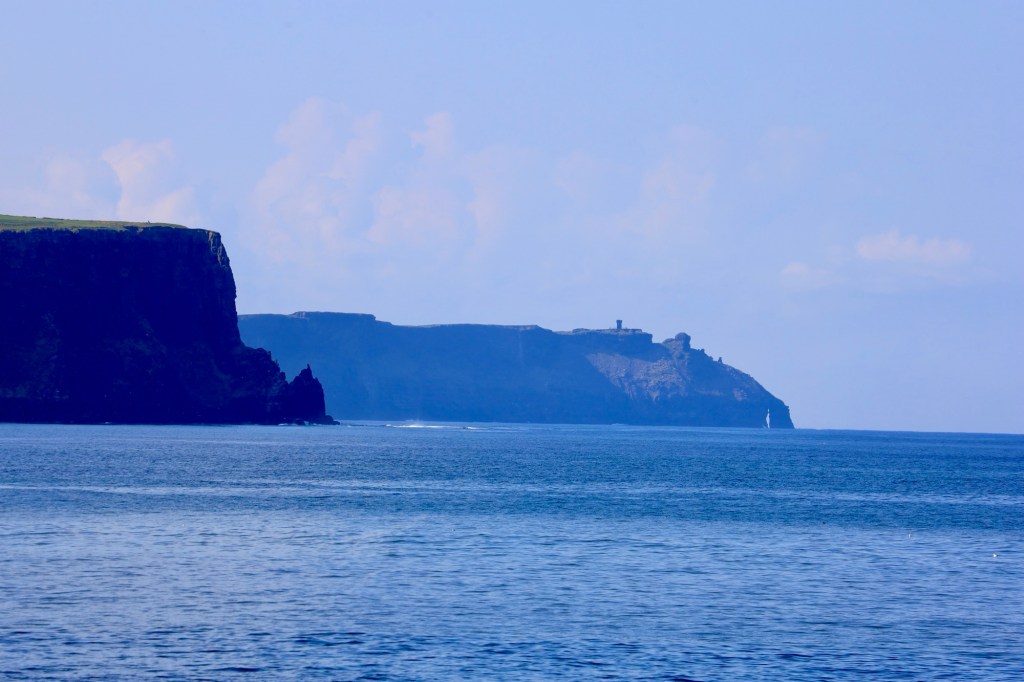 The next morning we are up early to head out to another of Mother Nature’s best efforts. The Cliffs of Moher are a short drive away and we are there as they open the gates to the parking lot. This area has a similar beauty to yesterday but is more refined with properly formed pathways, safety walls made from local slate sheets and a visitor centre that has interactive displays and a 4D cinema showing what it’s like to be a seagull living near the cliffs. It sounds a bit corny, but it works. I am taken by the views again but still love the rawness of Loop Head.