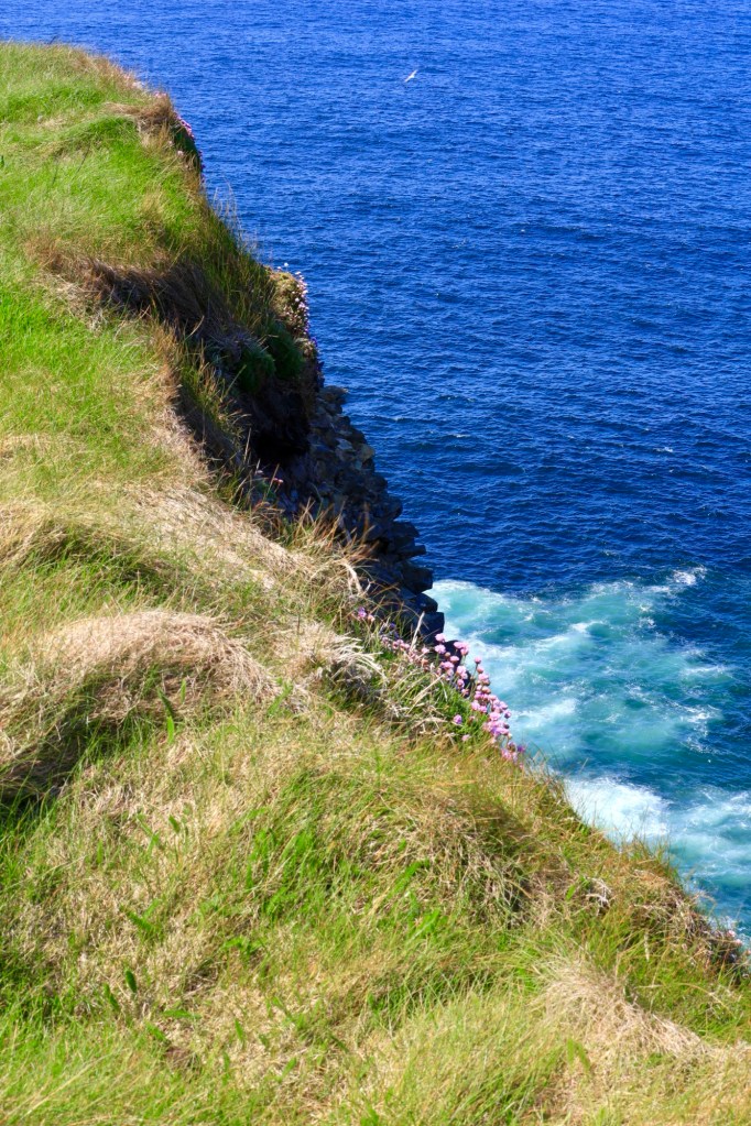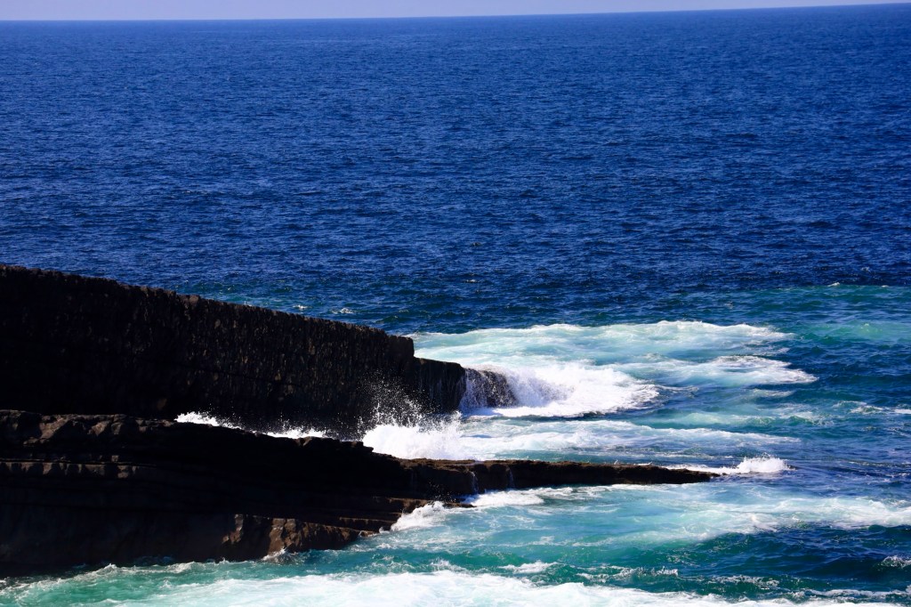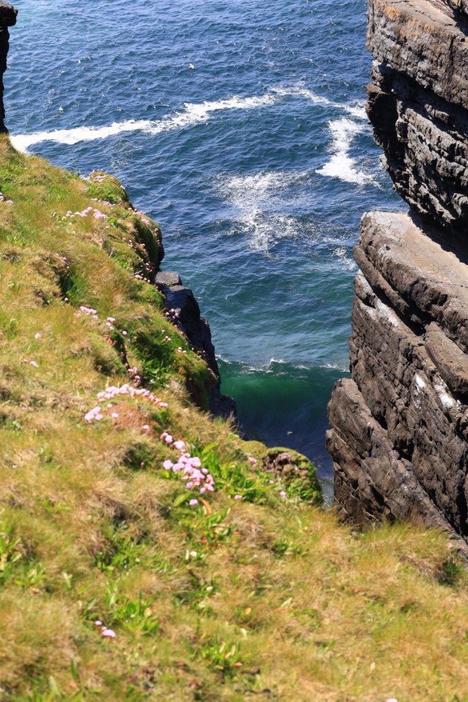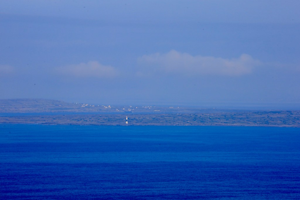 We continue our drive north, hugging the coastline and coming to grips with narrow roads and oncoming traffic. We reach Doolin where the ferry to the Aran Islands docks. It’s busy here with a large volume of people headed across for the weekend. It is a pretty bay with the blue waters and islands looking inviting.