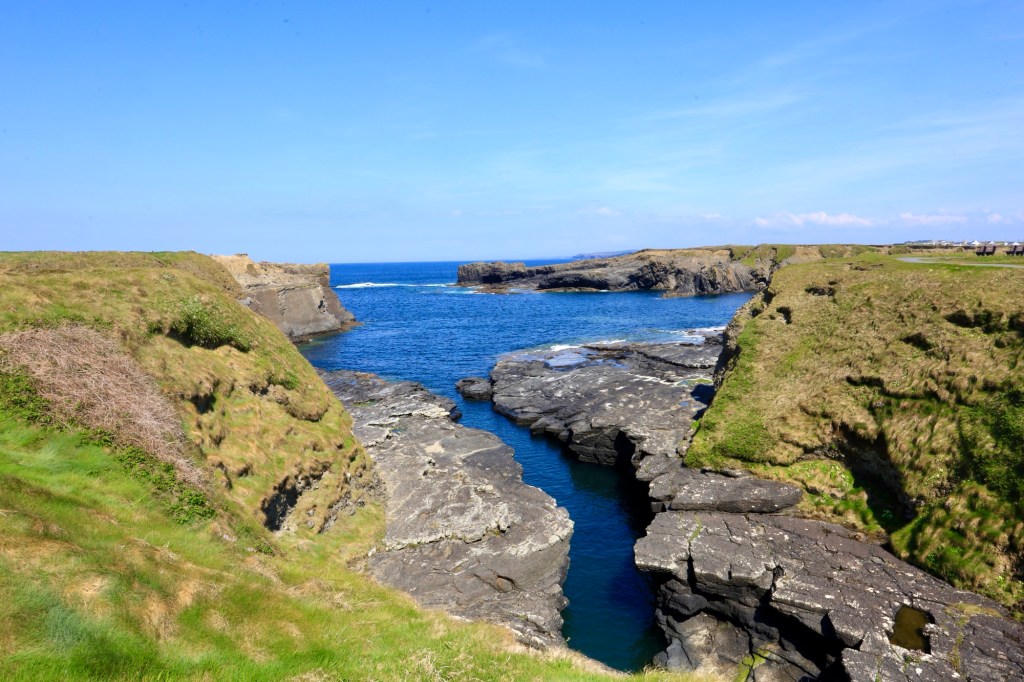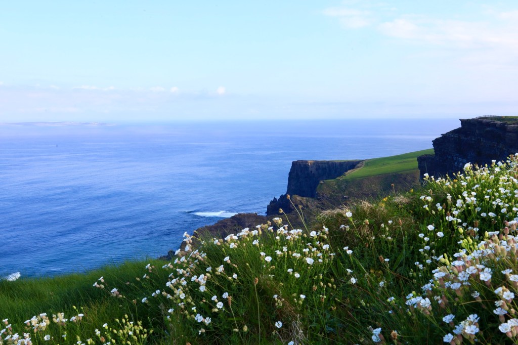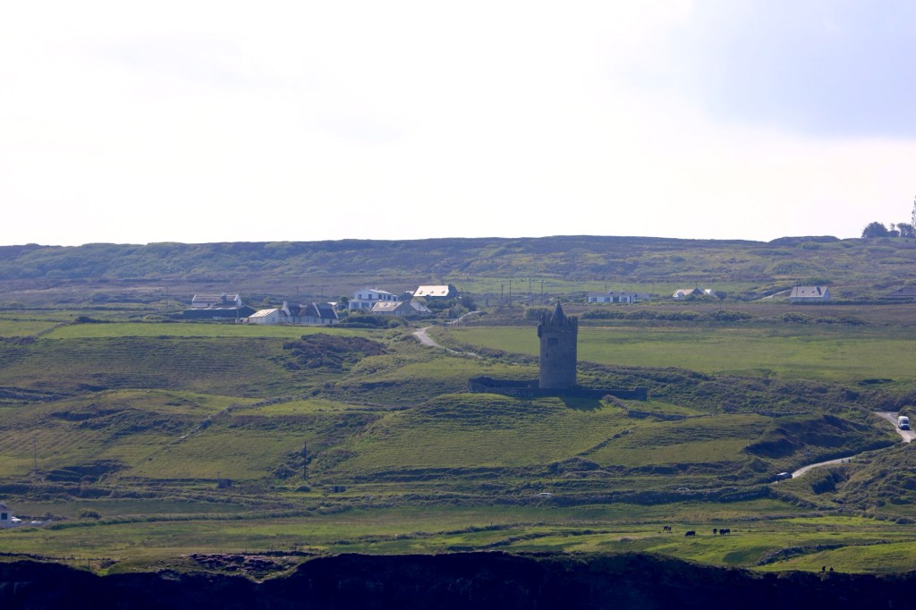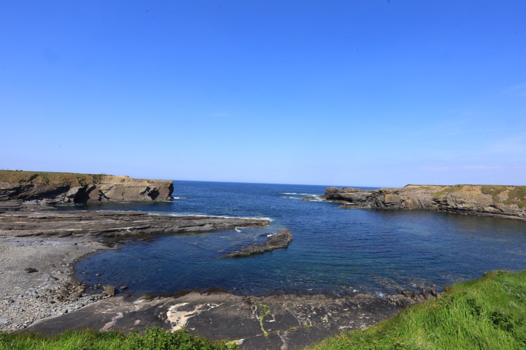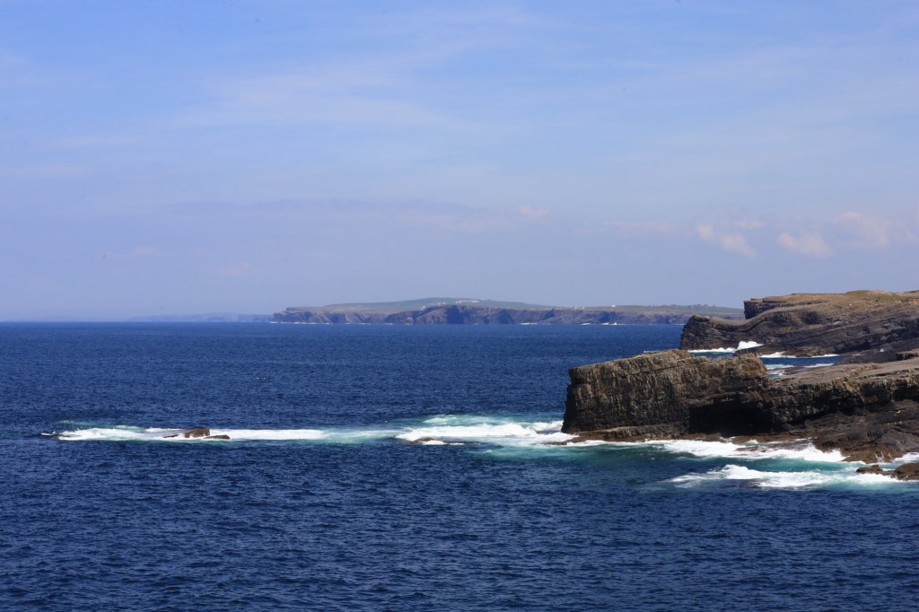 We continue our drive north, hugging the coastline and coming to grips with narrow roads and oncoming traffic. We reach Doolin where the ferry to the Aran Islands docks. It’s busy here with a large volume of people headed across for the weekend. It is a pretty bay with the blue waters and islands looking inviting.