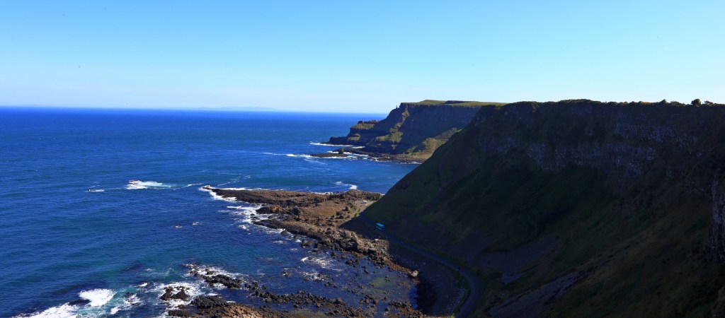 Today’s loop takes us north again, this time to Giant’s Causeway which is an area of approximately 40,000 interlocking basalt columns across a shoreline. It’s also a scenic walk along the coastline and up the headlands. While the walk down is easy and steady, the walk back up is breathtaking. There is a steep path followed by a steeper staircase but it’s worth the effort to see the whole coastline from up high.