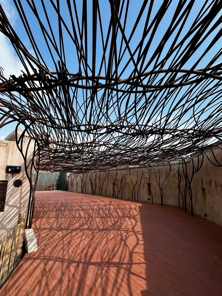 Our final afternoon sees us walking to the new dock area with its shopping complex giving Stacey a chance to look at the fashions that will arrive in Australia next season. From there it’s a short walk to Fort Saint-Jean which stands guard over the mouth of the marina. It is an interesting site with walkways leading off in many directions. Wandering around you get a glimpse of the sites we visited over the previous two days. It also has a rather unique shaded area which uses steel reinforcing rods, that are typically embedded in concrete, to create a very different look.