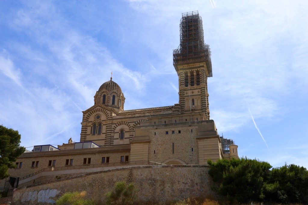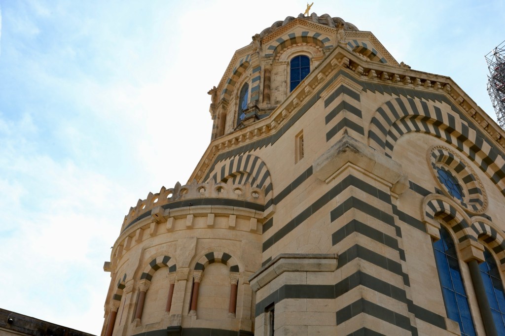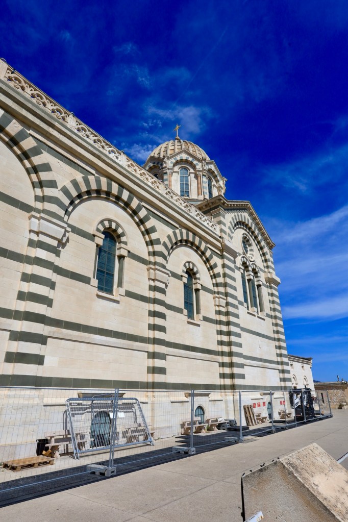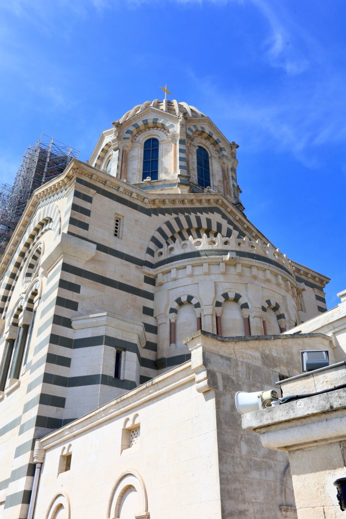 It’s worth the money as the views over the whole of Marseille are fantastic. The church is undergoing restoration work which entails seeing my most annoying foe, the dreaded scaffolding. I’m accustomed to working pictures to minimise the impact but it does tend to spoil a good shot and in this case the golden statue of the Virgin Mary that sits atop of the tower is fully encased. Never mind, the views are still worth the trip.