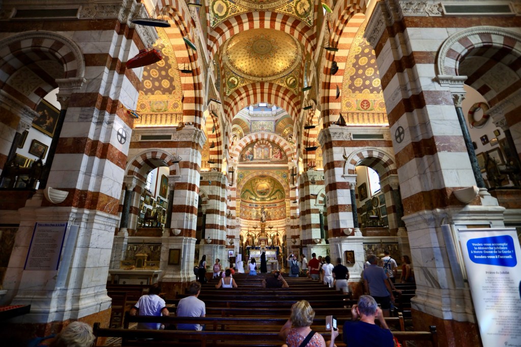 Our walk on our first afternoon had us passing the striped church of Cathédrale La Major which stands out in the old dock area of the city. We revisited this church two days later, walking through it and finding a beautifully simple cathedral.
