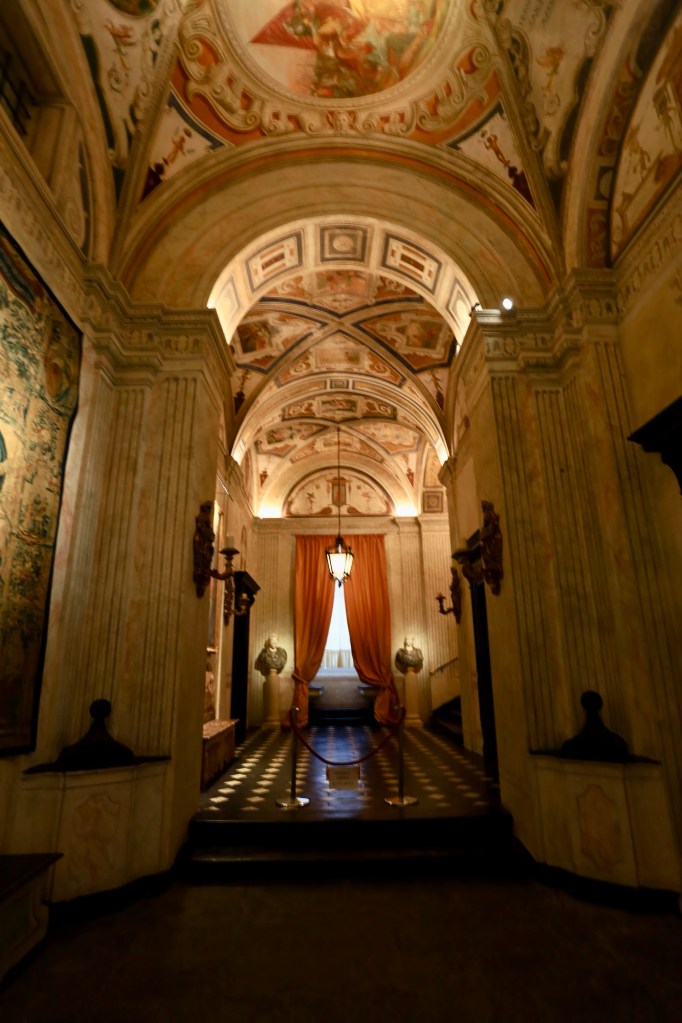 One thing we did find necessary to do is to look in every open door. Hidden behind the facade could be a gem. We happened upon beautiful foyers with decorative walls and ceilings.