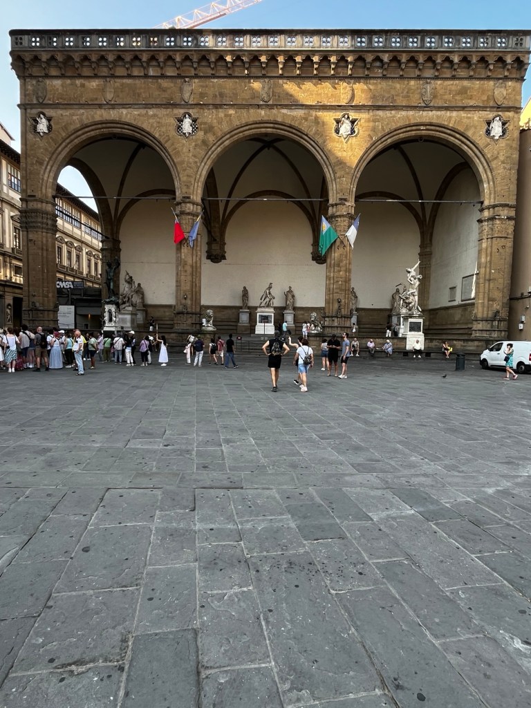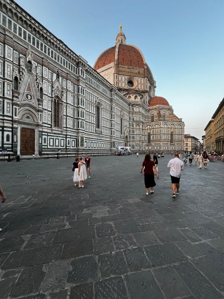 We stopped and through our poor Italian language skills, had a conversation with one of the players. Instead of soccer, they were preparing for a traditional game of Calcio Storico Fiorentino with the rules explained by a local as 27 players a side, score goals by kicking the ball with feet, throwing the ball with hand and wrestling and punching the opponent with fist, “good fun!”